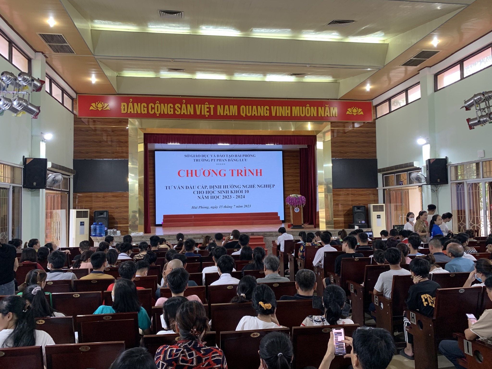 Ngày 15/7/2023, Trường PT Phan Đăng Lưu - Trường Đại học Hải Phòng long trọng tổ chức Chương trình Tư vấn đầu cấp, định hướng nghề nghiệp cho học sinh Khối 10, năm học 2023 - 2024. Chương trình là diễn đàn cung cấp cho các bậc phụ huynh và các em học sinh nhiều thông tin bổ ích về Nhà trường, chương trình Giáo dục phổ thông 2018, cũng như một số lời khuyên liên quan tới việc lựa chọn tổ hợp môn đầu năm lớp 10. Chương trình nhận được sự quan tâm của hơn 400 bậc phụ huynh và các em học sinh.